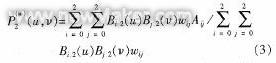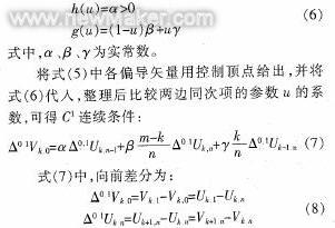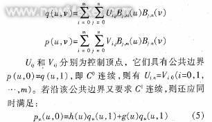 兩曲面光滑拼接時,與它們公共邊界相對的兩條邊界應分別在公共邊界的兩側,從而使公共邊界不形成尖棱。另一方面,光滑拼接時還要使P(u,v)的次數不變。用公式表達為: