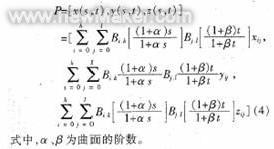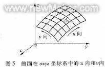 具體地,可以通過下面的方法求出該曲面上的任何一點的坐標值。如圖5,在坐標系oxyz中,設Aij=[xij,yij,zij],s、t分別為沿曲面u向和v向的參數,且s、t∈[0,1]則曲面上任一點的坐標值為: